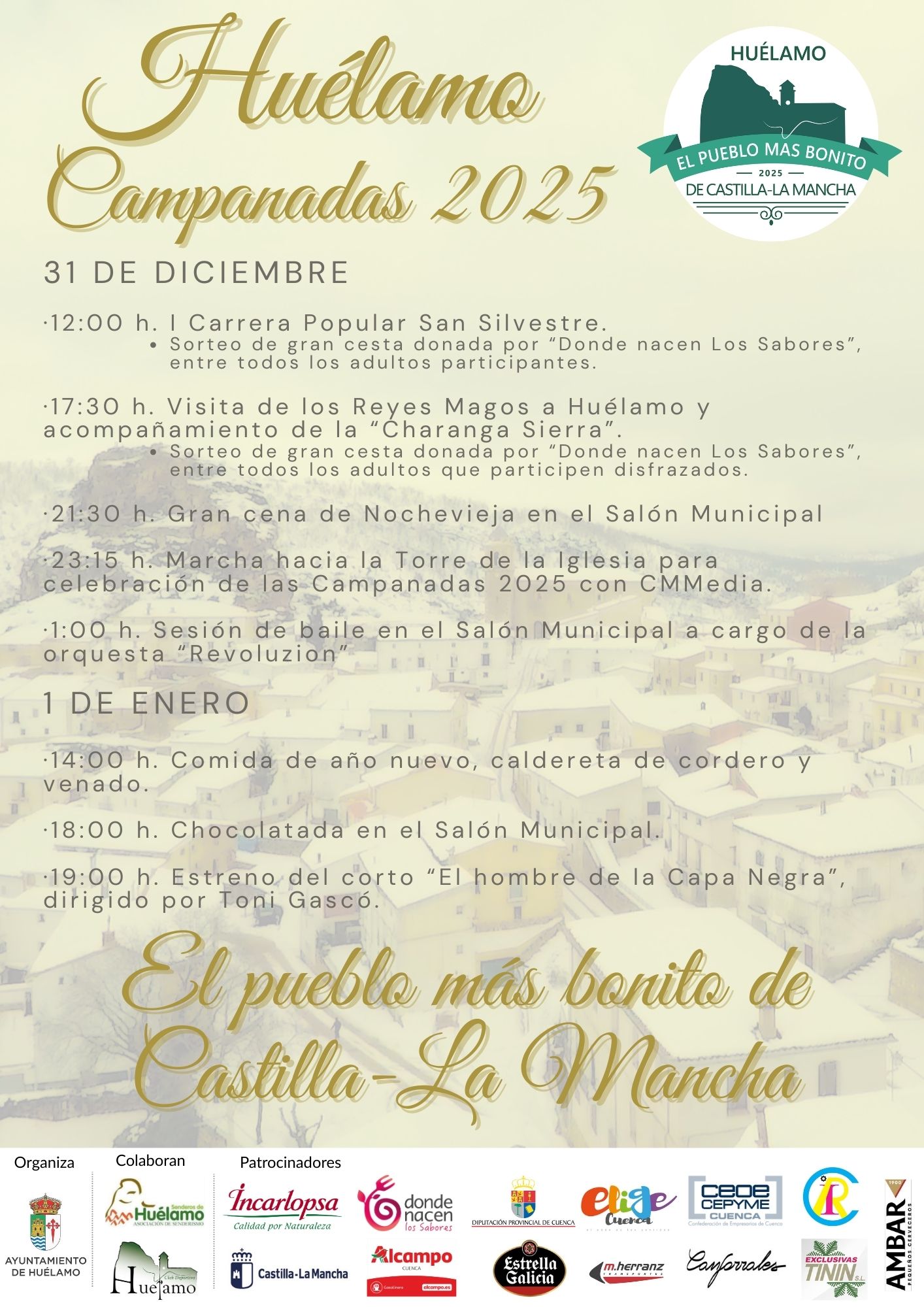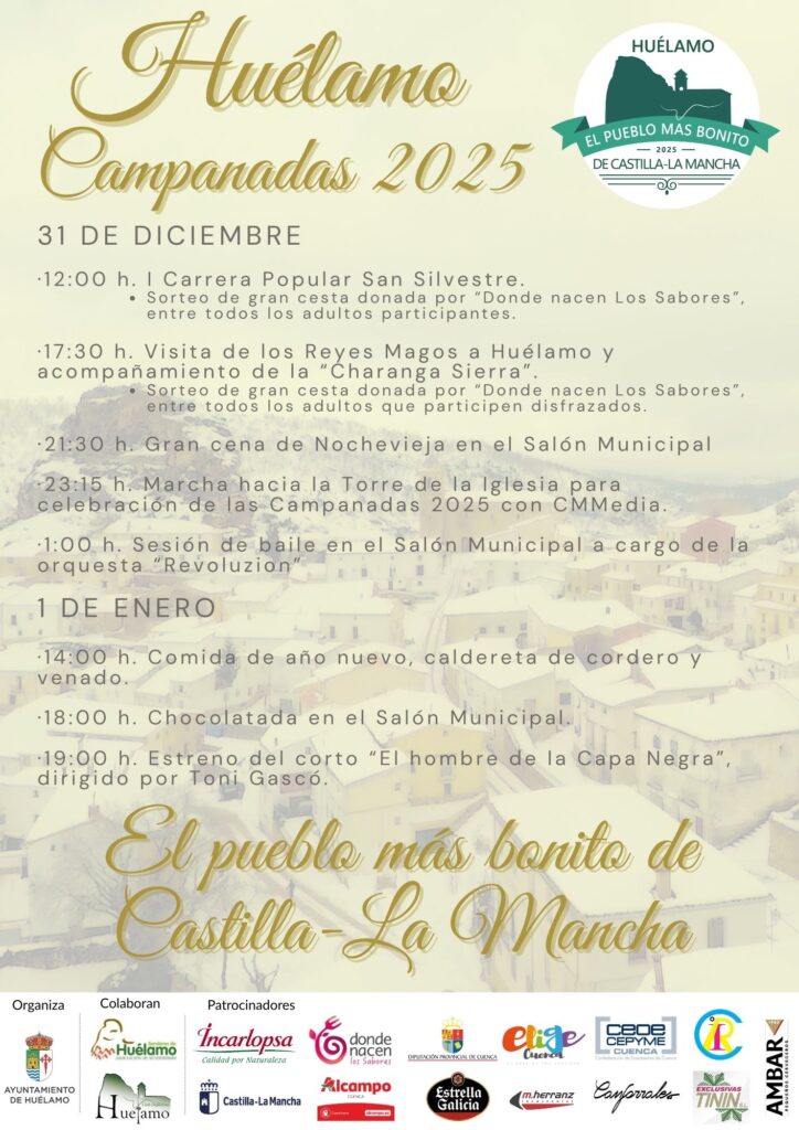 Huélamo despide el año 2025 con un completo programa de actividades navideñas que sirve como broche final a un año inolvidable, marcado por el reconocimiento como Pueblo Más Bonito de Castilla-La Mancha. Las tradicionales Campanadas se celebran con deporte, música, visitas muy especiales, gastronomía, cine y baile, implicando a vecinos y visitantes en un ambiente de convivencia y orgullo colectivo.