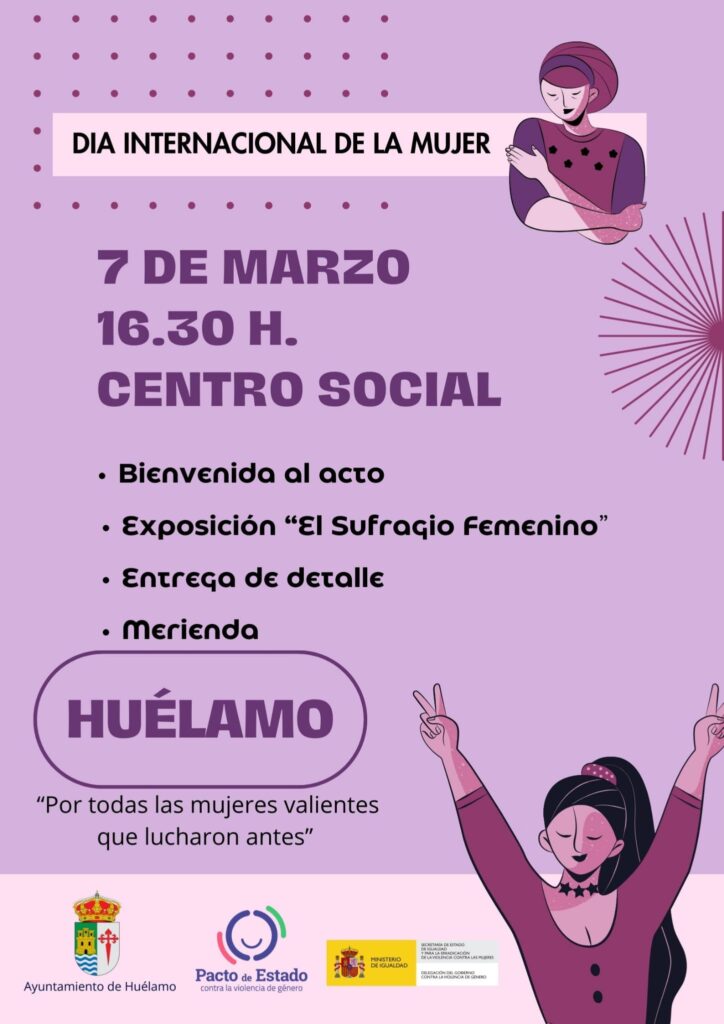 Por la tarde, a las 16:30 h en el Centro Social, el municipio celebrará un acto conmemorativo del Día Internacional de la Mujer.