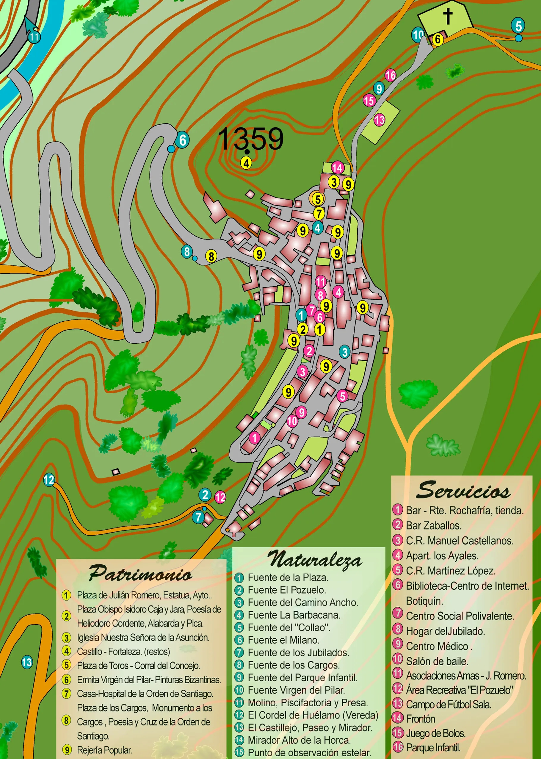situado en el Parque Natural de la Serranía conquense y en un radio de 35 Kms. puede visitar el nacimiento de los rios Cuervo,Jucar y Tajo, también el parque de hosquillo ,el estrecho de Priego,la embotelladora solan de cabras, el pueblo medieval de Albarracin ,ventano del diablo,ciudad encantada,lagunas de cañada del hoyo y las casas colgada.