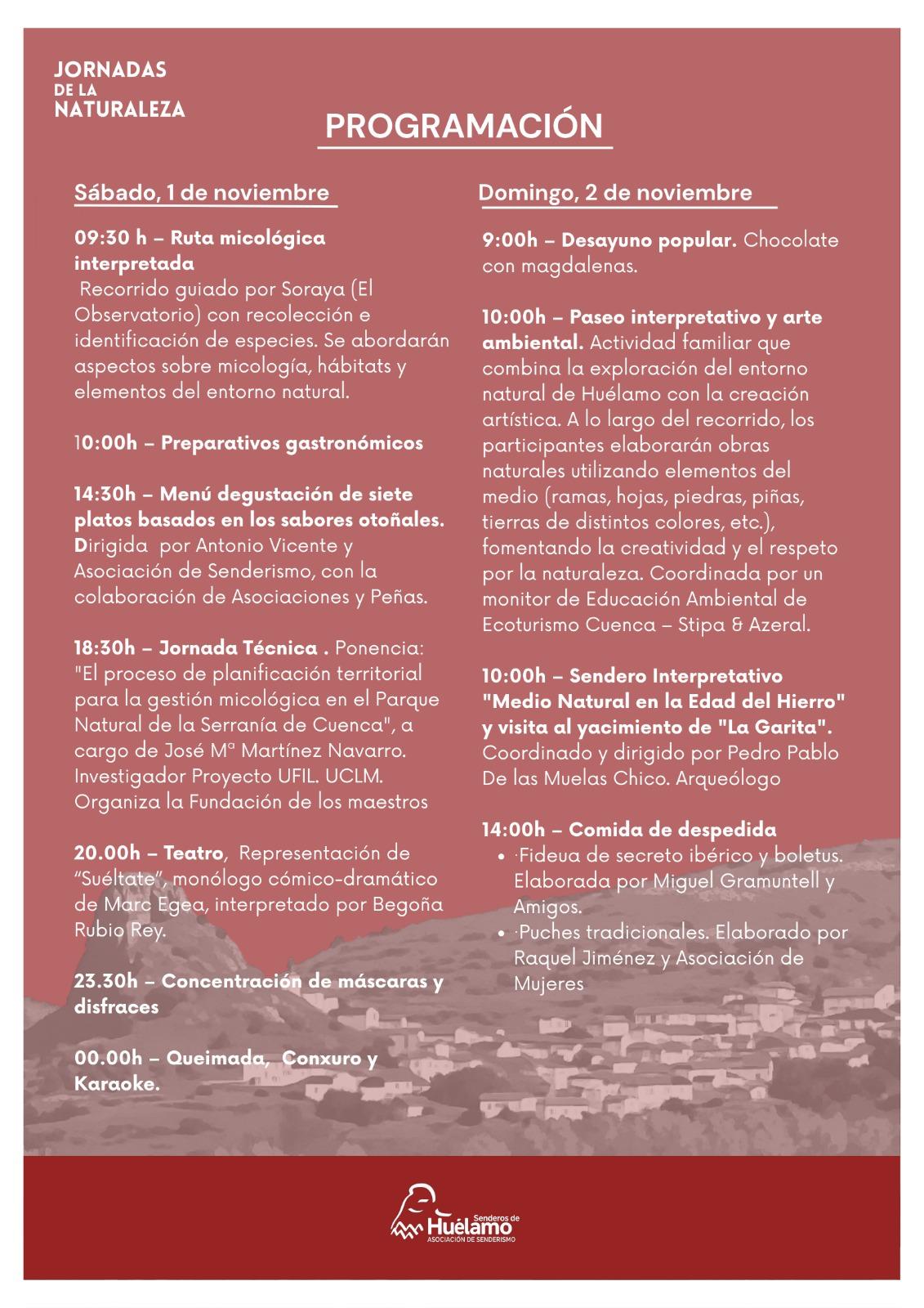 El 1 y 2 de noviembre, la Asociación de Senderismo organizará las tradicionales Jornadas de la Naturaleza en su XVI edición, en las que se podrá disfrutar de un fin de semana dedicado al medio ambiente, la micología y la gastronomía otoñal. Habrá rutas guiadas, degustaciones, teatro, actividades familiares y comidas populares.